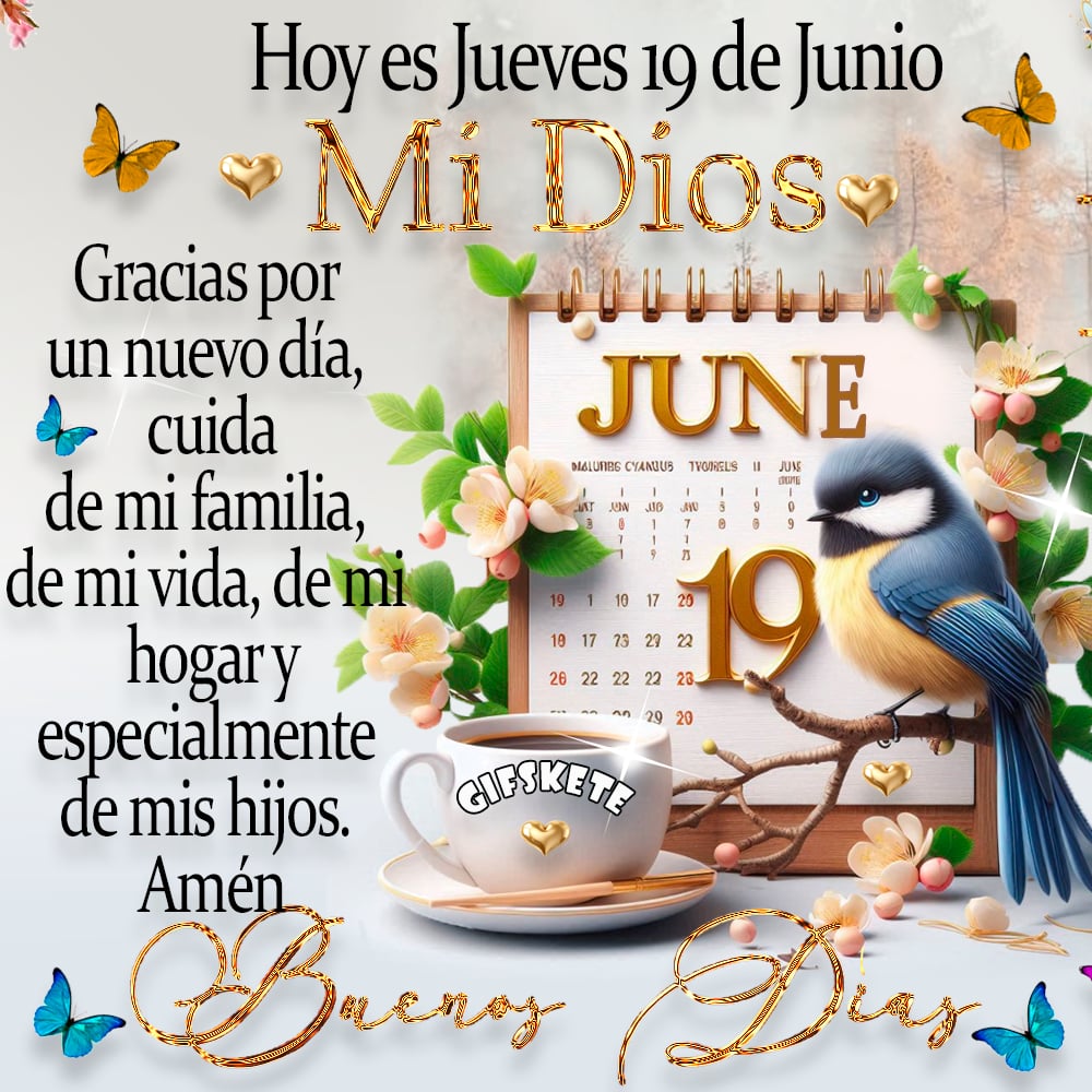 Hoy es Jueves 19 de Junio Mi Dios: Gracias por un nuevo día, cuida de mi familia, de mi vida, de mi hogar y especialmente de mis hijos. Amén